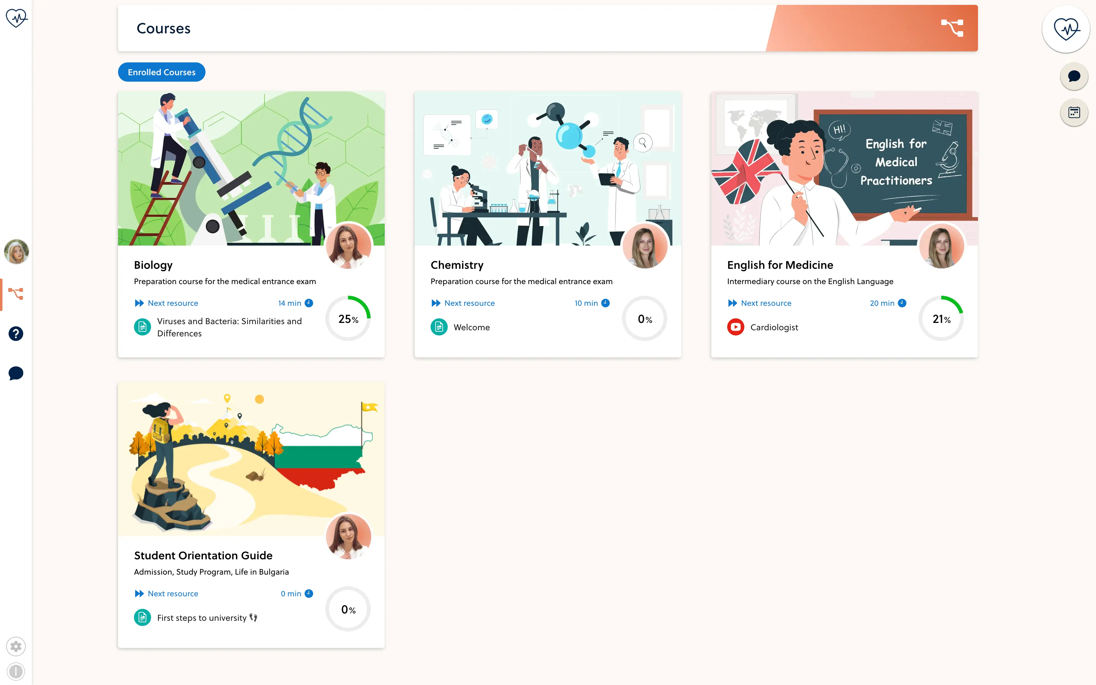 Study 3 subjects in our online course: Biology, Chemistry, Medical English and use our large question bank and different methods to practice questions for optimal & fun preparation
